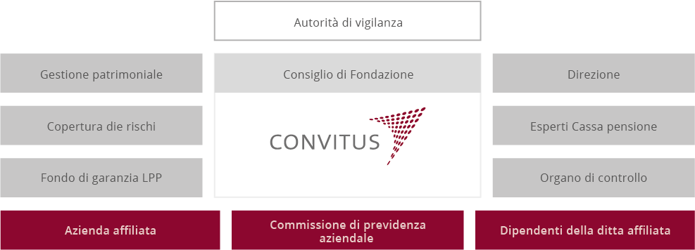 Il Consiglio di fondazione è composto da persone di grande competenza e con un'esperienza pluriennale che perseguono attivamente gli obiettivi della CONVITUS per garantire a tutti gli assicurati una previdenza corretta.